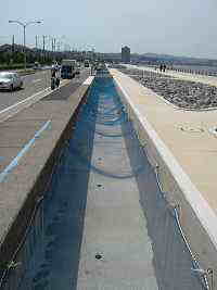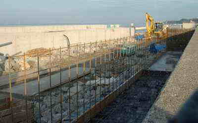 ![]() ケーソンの手前側にも海 水があるのがよく分かる |