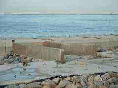 ←大津側も波消しブロックの設置が進む。 →横須賀新港に あったニュータイプ ブロック |