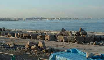 | あった、あった、ケーソンも割石もここ横須賀新港で 積み込まれて海路を行く。 |