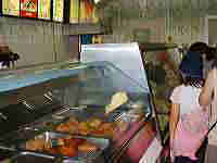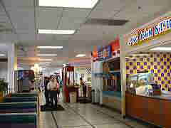 サンドイッチ、 チキン、ドーナ ツ、ピザ、メキ シコ料理、中華 ↑全景 料理等、色々な店がある。 日本円も使える。 内部→ |