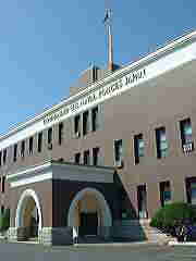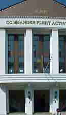 在日米海軍の司令部及び極東司令部 かつての横須賀鎮守府の建物がそのまま 使われている。関東大震災後大正15年に 建てられた重厚な建物である。 屋上の旗はそこに表示されている星の数で その日に在勤している最高位の官位を表し ているのだという。 |