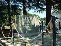 ![]() クラブ入口右にある方位盤 赴任地の方向に向かって手を 合わせたという |