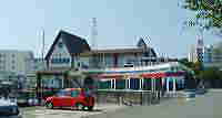 正面ゲートゲート近辺は撮影禁止で あったが、このくらい離れ れば許されると、勝手に 信じている。 国道16号線上で、横須賀 中央駅と汐入駅ほぼ中間 やや汐入よりに位置する。 左側の建物が管理棟であ る。 夕方になると、基地から帰宅する車で大混雑し「基地渋滞」となる。 以前、ゲートの右側にあったシンボルとも言うべき大きな錨が何故か撤去 されていた。(2004.6.2現在) ベースへの入口は他に三笠ゲートがある。 イラク紛争の最中でもあり、正面ゲートのセキュリティチェックは厳しいだろ うと覚悟していたが、何故か無チェック。ベース内でも銃を持った兵士の 姿を一人も見かけなかった。 |